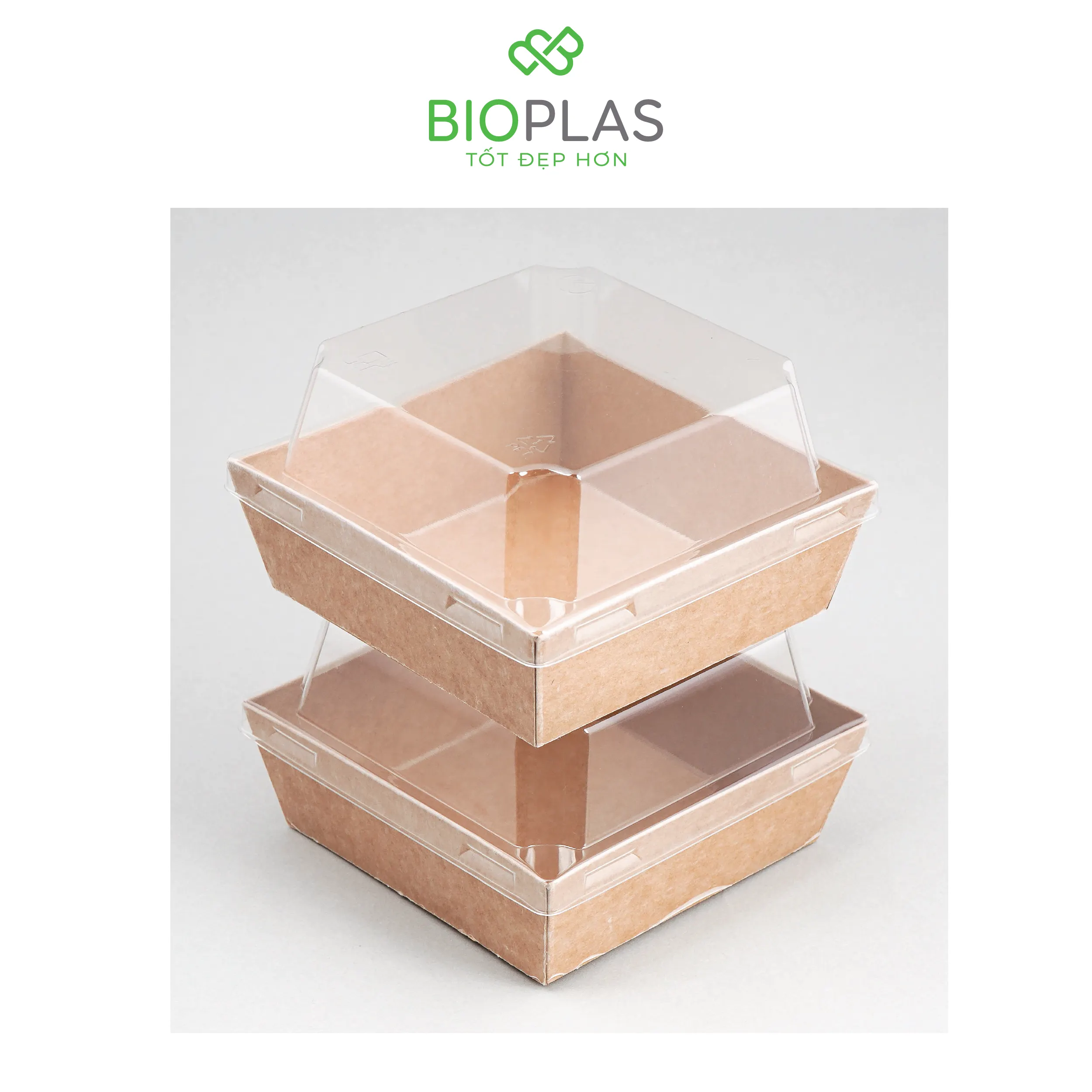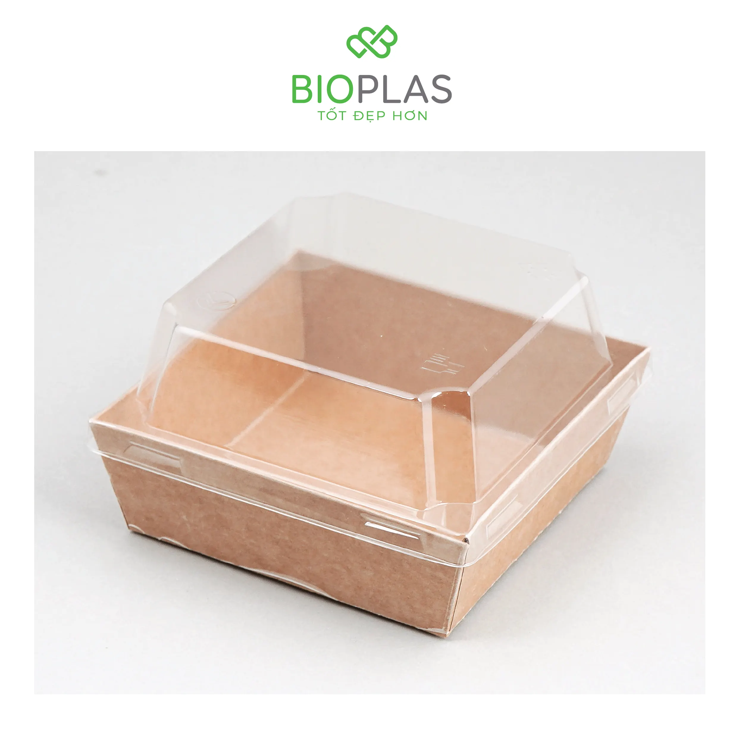 3RHOME-HỘP GIẤY VUÔNG NÂU 105*105 NẮP PET