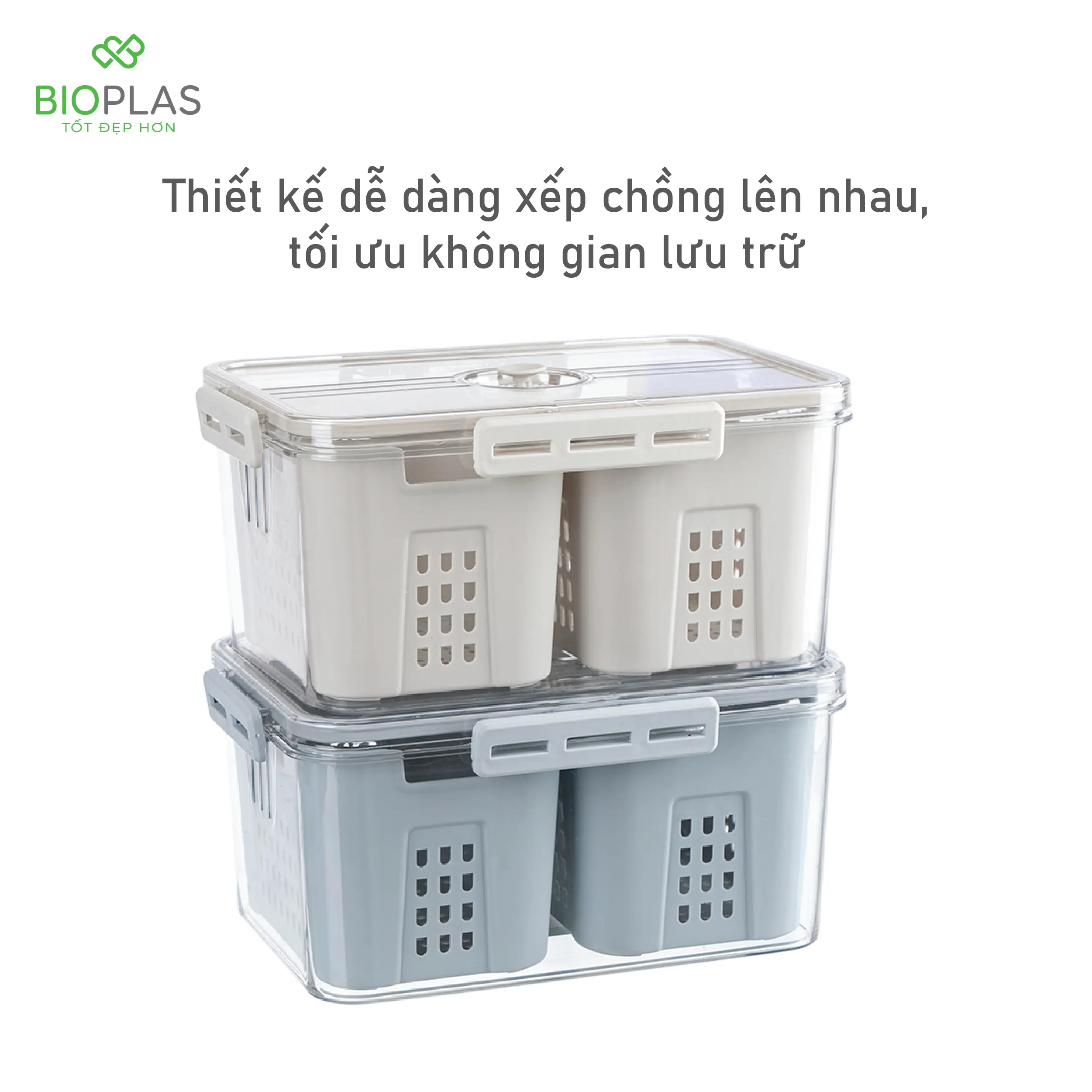 Thiết kế thông minh: Sản phẩm được chia thành nhiều ngăn tách biệt, dễ dàng hơn trong việc phân loại thực phẩm. Thiết kế hộp xếp chồng lên nhau dễ dàng, tối ưu không gian lưu trữ
